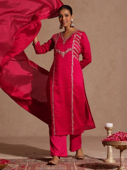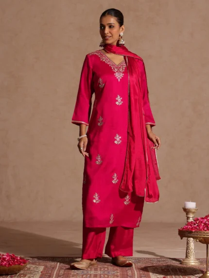 Vaanya Pink Silk Blend Zari Embroidered Straight Kurta Set