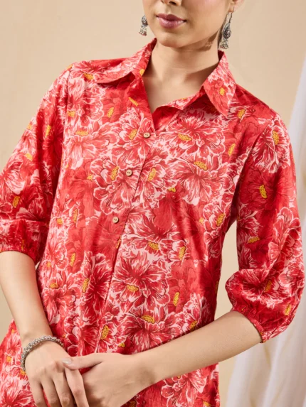 Vinnie Coral Pure Cotton Floral Printed A-line Tunic