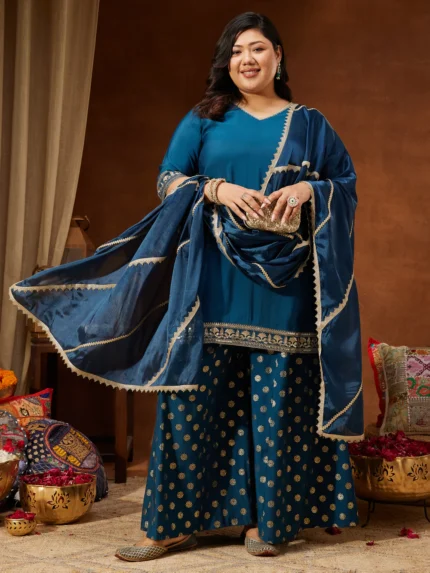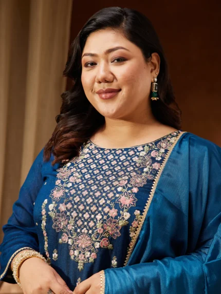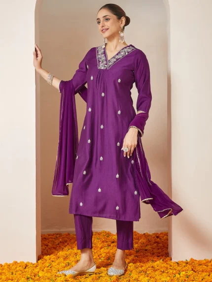 Aarohi Purple Silk Blend Embroidered A-line Kurta Set