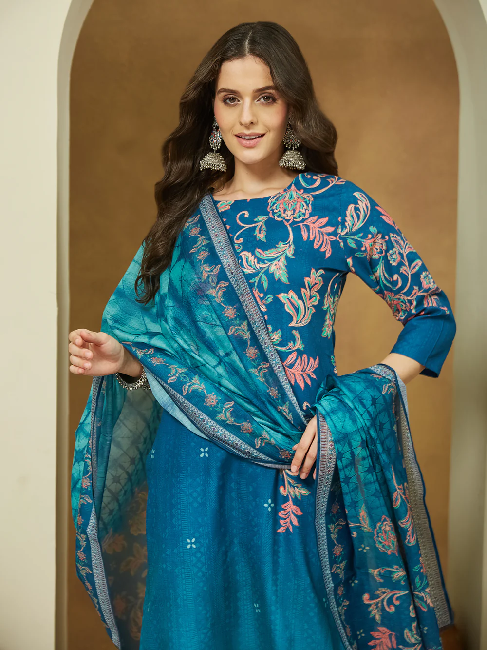Be the first to review “Aadhira Teal Blue Cotton Blend Floral Printed Straight Kurta Set”