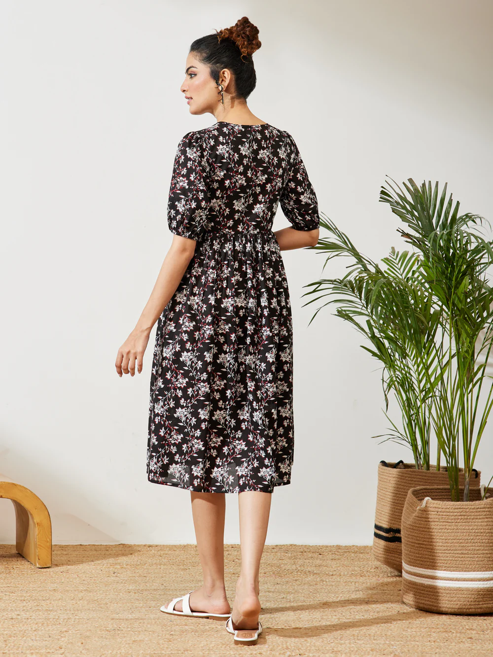 Be the first to review “Aura Black Pure Cotton Floral Printed Gathered Dress” Cancel reply