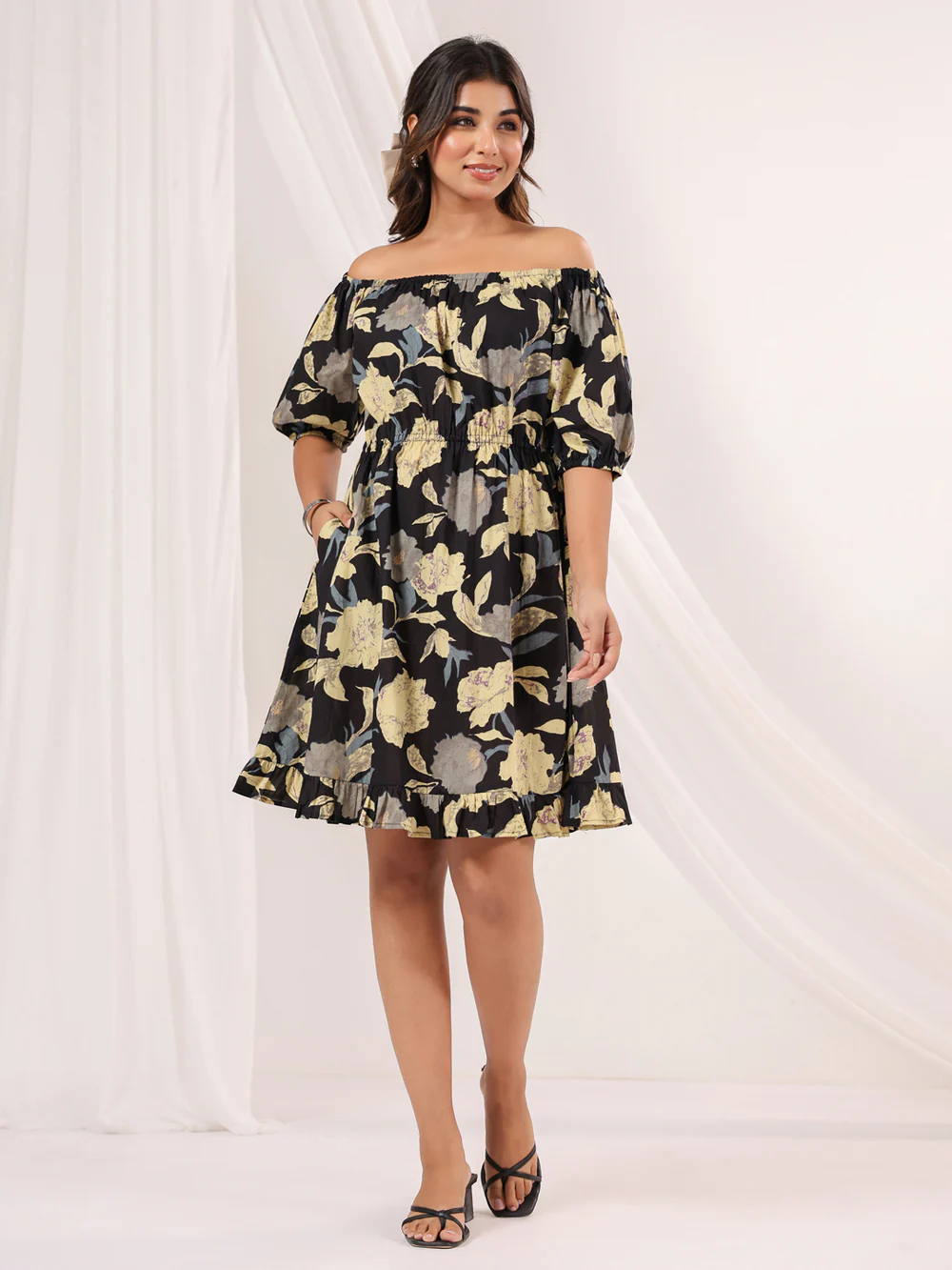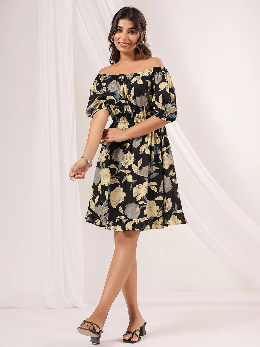 Melody Black & Cream Pure Cotton Floral Printed Fit & Flare Dress Original price was: ₹2,499.00.Current price is: ₹999.00.