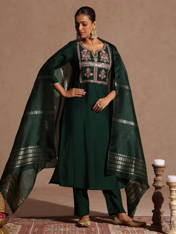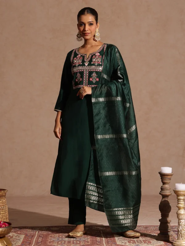 Navya Sage Green Georgette Embellished Gold Printed A-line Kurta Set