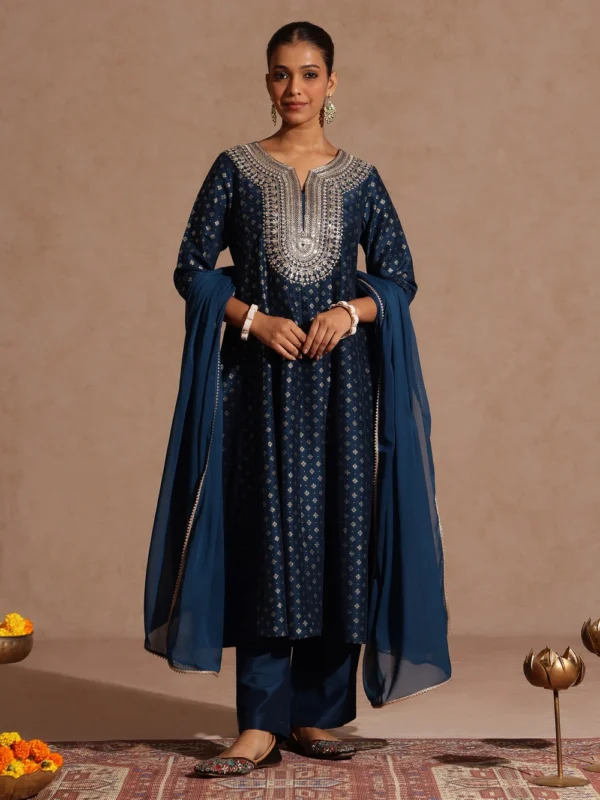 Be the first to review “Navya Royal Blue Georgette Foil Printed Embellished A-line Kurta With Palazzo Set” Cancel reply
