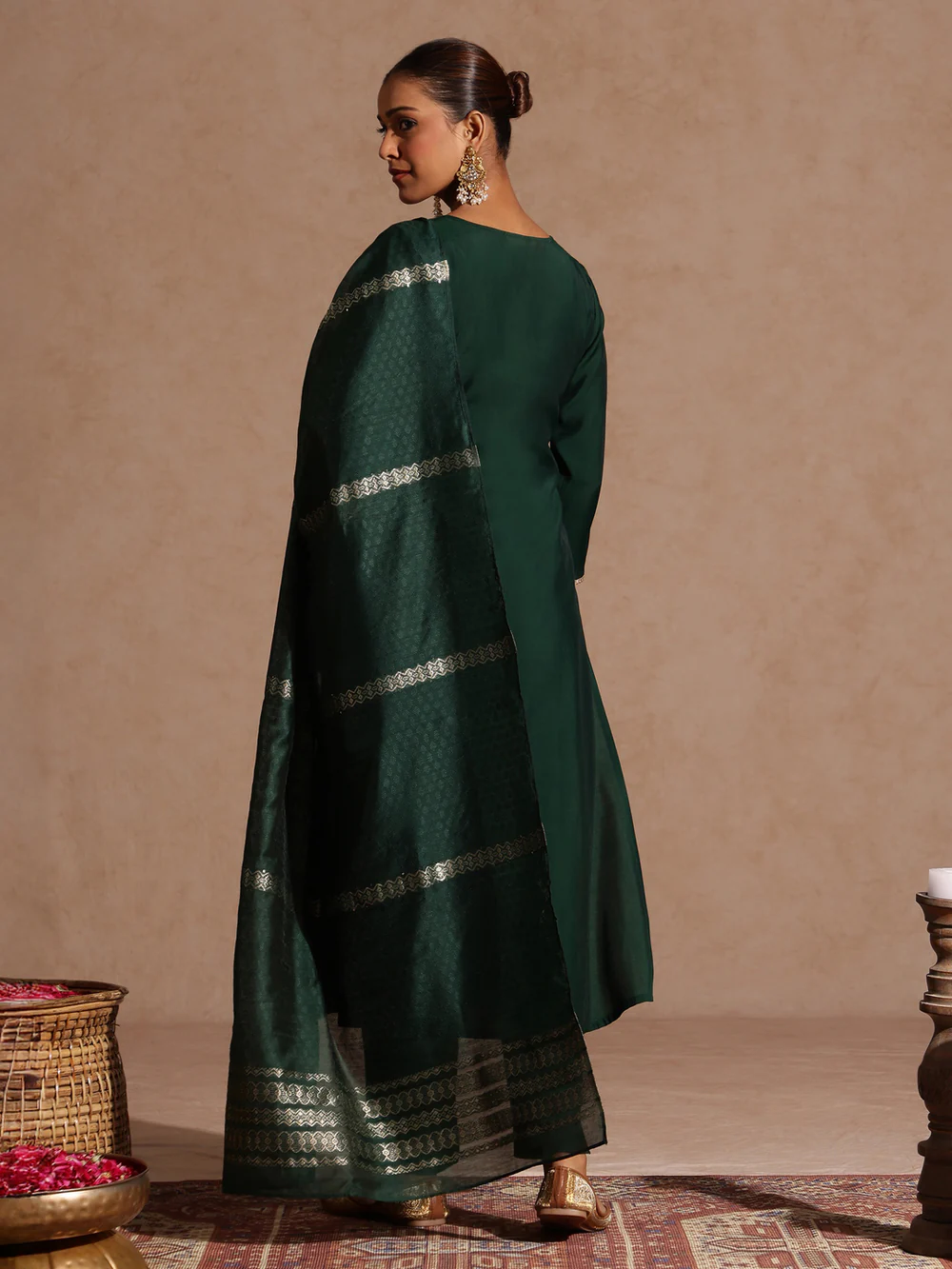 Be the first to review “Niyati Bottle Green Chanderi Silk Zari Yoke Embroidered Straight Kurta Set” Cancel reply