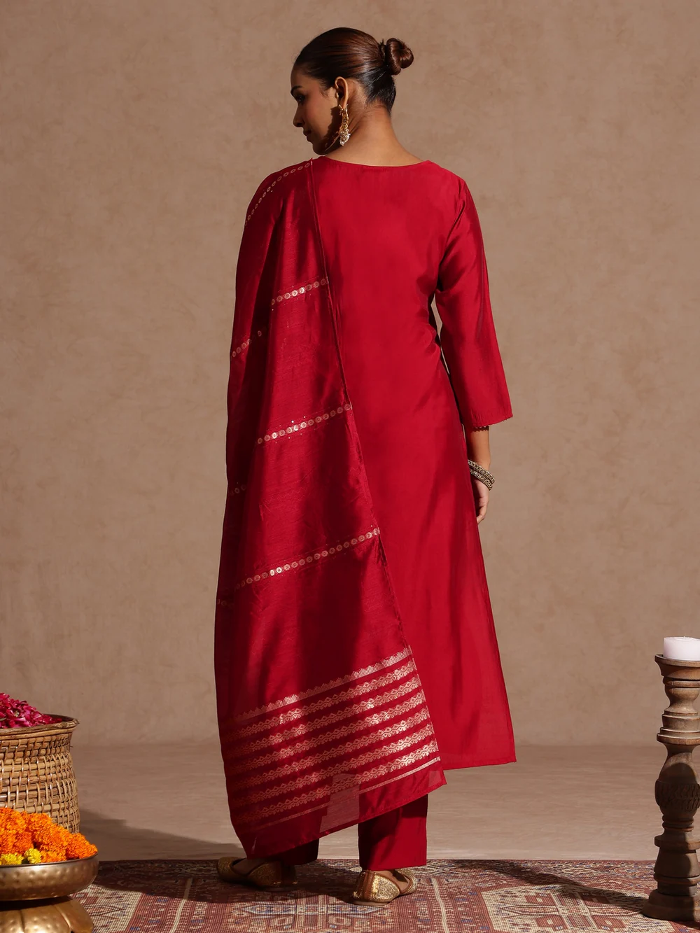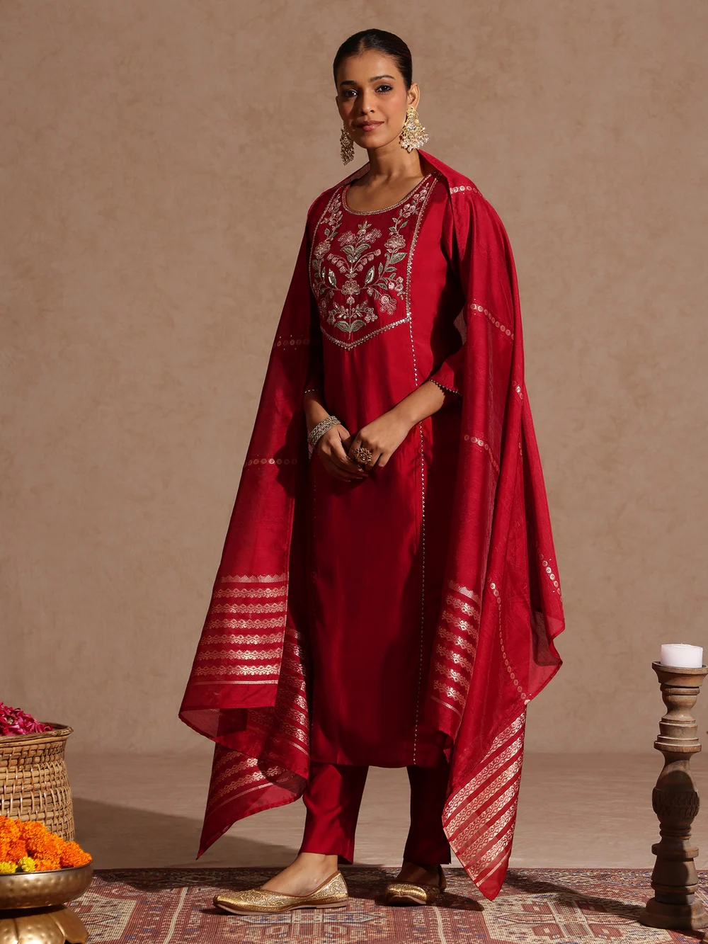 Be the first to review “Niyati Maroon Chanderi Silk Zari Yoke Embroidered Straight Kurta Set” Cancel reply