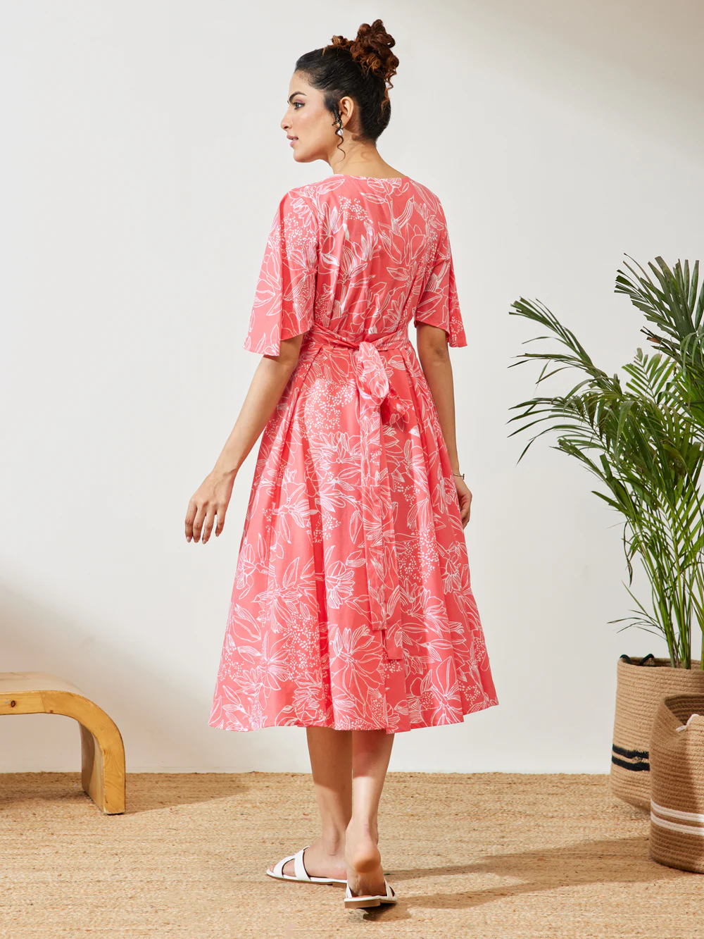 Be the first to review “Sandy Peach Cotton Floral Printed A-line Dress”